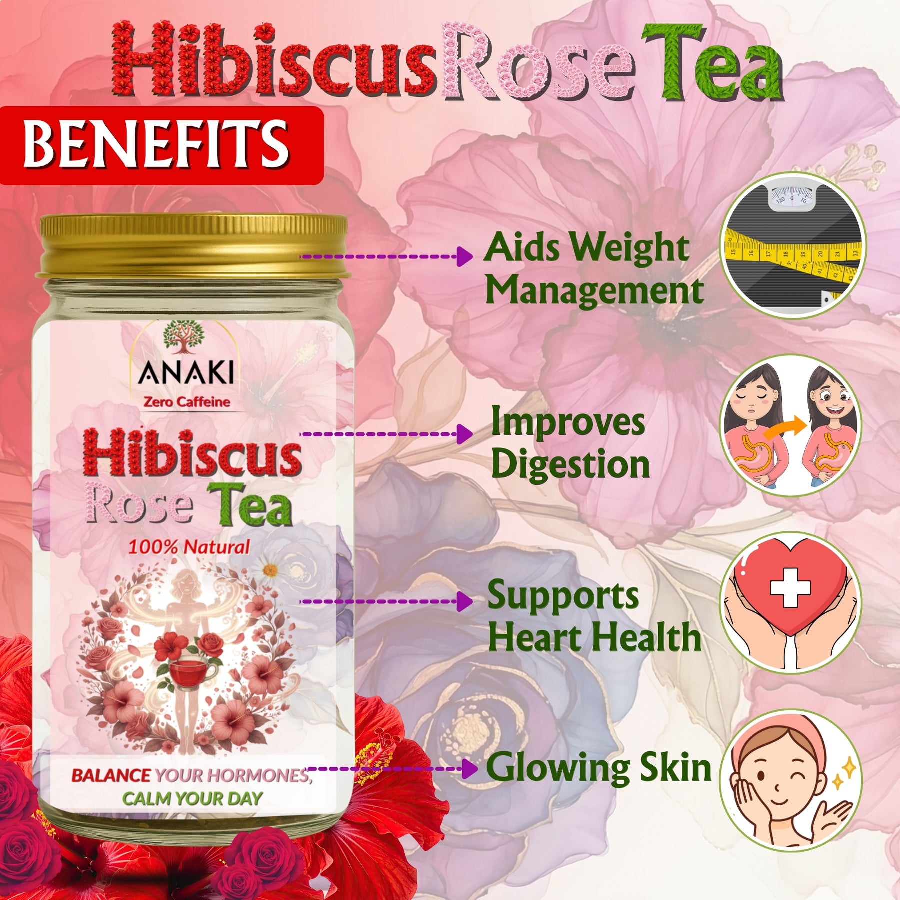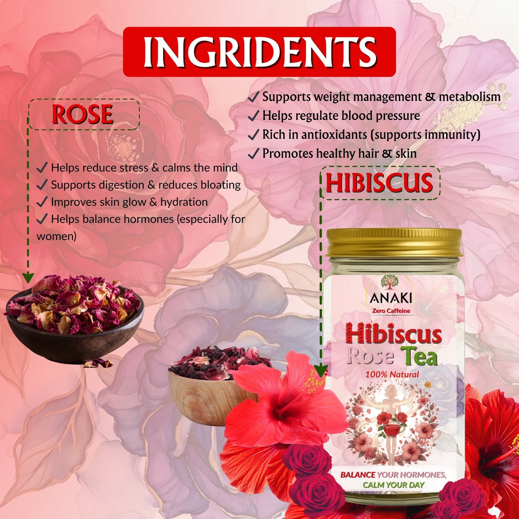 Refresh and revitalize yourself with our 100% herbal Hibiscus Rose Herbal Tea. Experience the perfect blend of Rose & Hibiscus, specially crafted to give you a brighter & glowing skin.